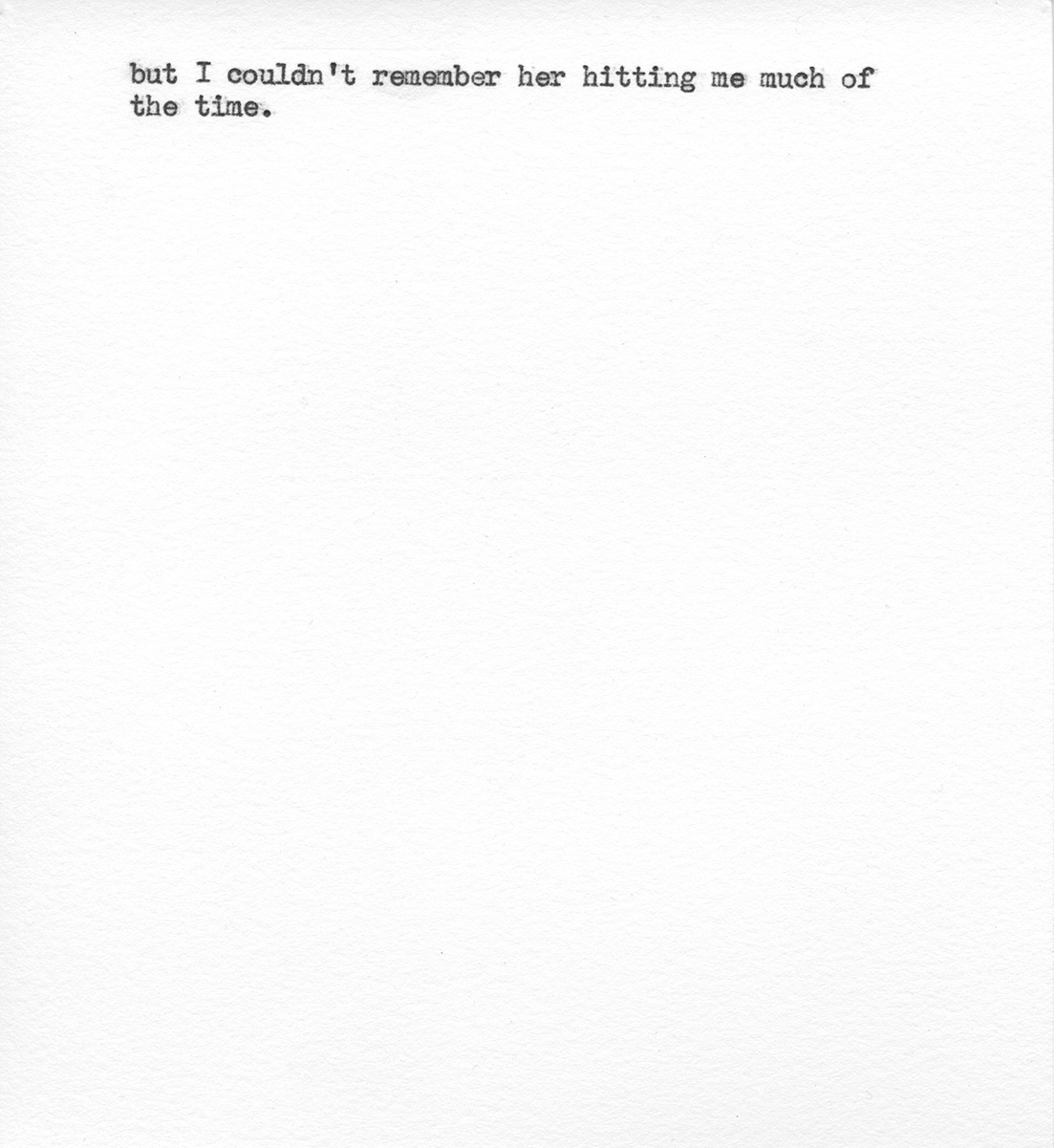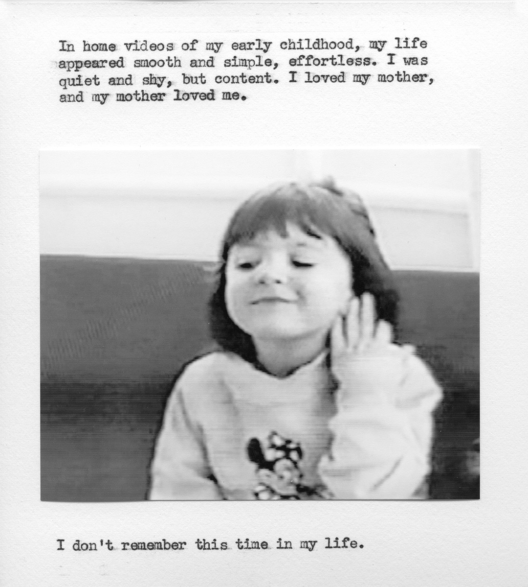 Titled “buried”, the book is 35 handmade pages of suppressed memories in the form of words and fabricated photographs, echoing a diary I kept (and ended up burying in the ground) while the abuse was going on.